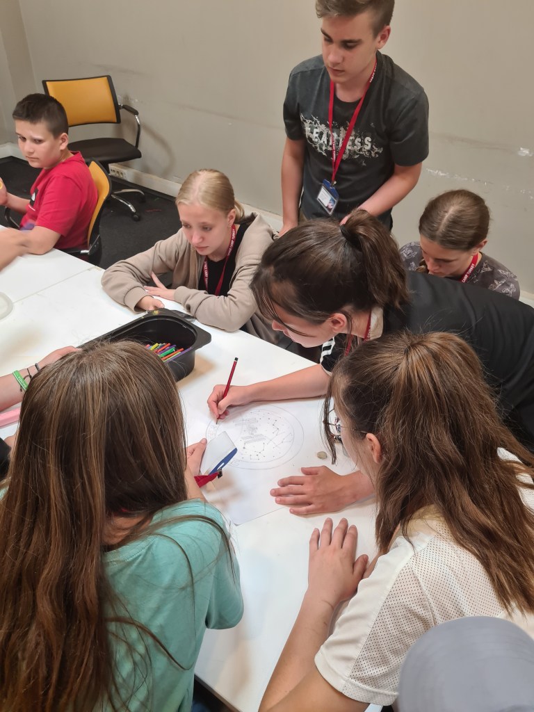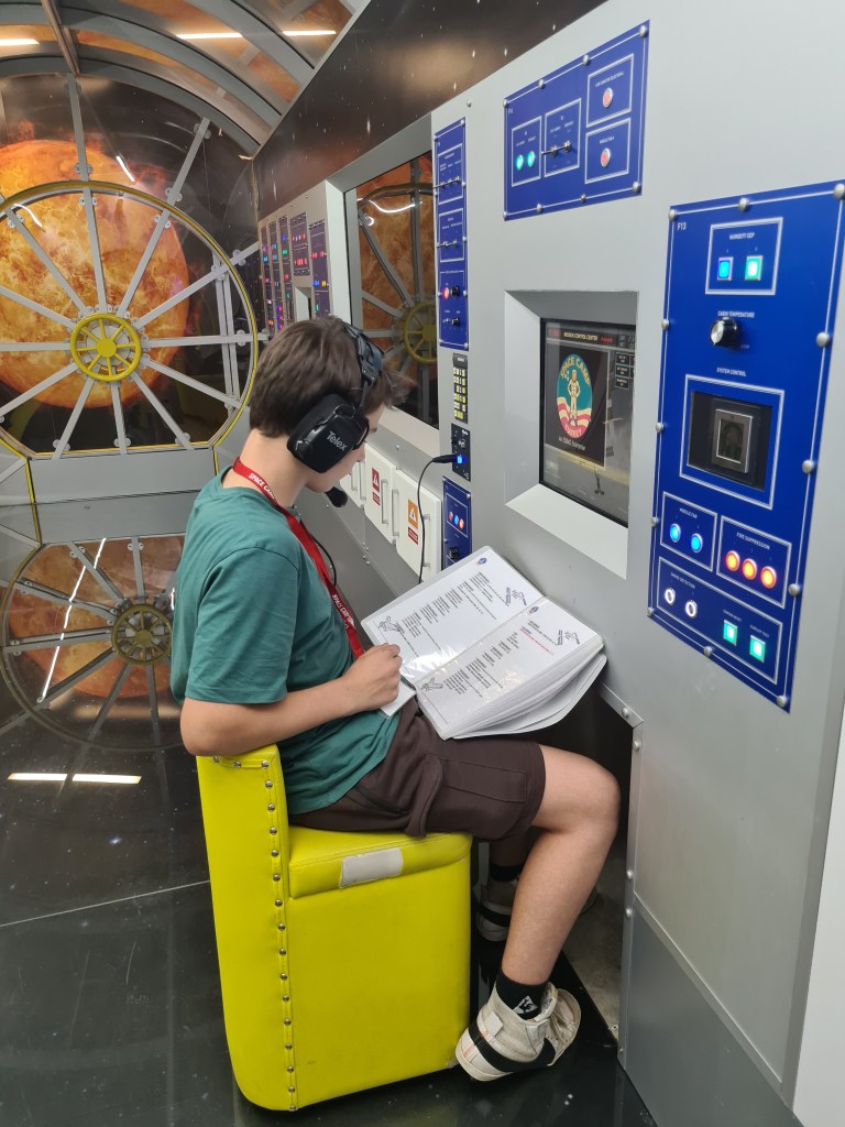 Today was the day! Rehearsals were over, scripts were practiced, and it was MISSION TIME! It was an exceptional experience to watch these incredible kids, speaking and acting as real astronauts during their missions. They had to run through shuttle preparations, launch, separate the engines, connect with the International Space Station, fulfill their missions and experiments, deconnect from ISS, and get home safely. The camp councelors would challenge the teams with problems that they needed to solve as a team. The entire experience demanded focus and concentration for over an hour. Our students were ROCKSTARS! Below are some pictures I captured from the day’s activities. We’re looking forward to the BBQ party tomorrow night!